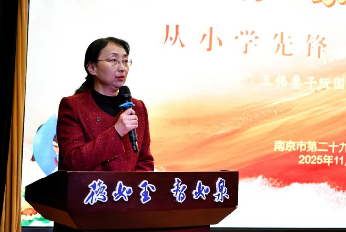 下午的大报告厅座无虚席,现场氛围庄重而热烈。活动伊始,主持人向全场介绍了出席本次宣讲会的重要嘉宾:王伟烈士的夫人阮国琴女士,爱国主义教育专业委员会首席顾问郭庆红女士,南京微防文化交流中心主任陈朋祥先生、科长常苗进先生、干事张诺先生,鼓楼区教育局局长、鼓楼区委教育工委书记侯正永。苏州工业园区22位中小学副校长,以及清凉山社区的党员代表、二十九中师生代表也共同参与了此次活动。