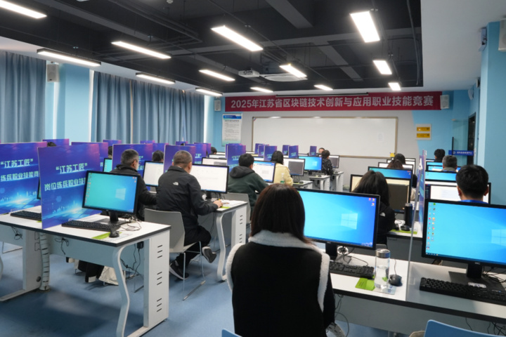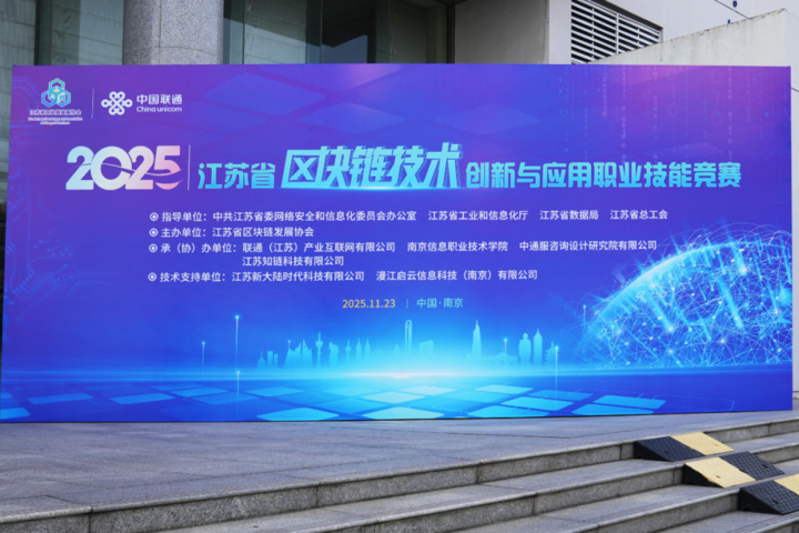 11月23日,2025年江苏省区块链创新大赛——“江苏工匠”区块链技术创新与应用职业技能竞赛决赛在南京信息职业技术学院举办。本次竞赛由省委网信办、省工业和信息化厅、省数据局和省总工会联合指导,省区块链发展协会主办,联通(江苏)产业互联网有限公司、中通服咨询设计研究院有限公司、南京信息职业技术学院、江苏知链科技有限公司等单位承(协办),江苏新大陆时代科技有限公司和漫江启云信息科技(南京)有限公司提供技术支撑。
