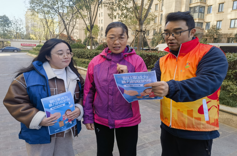 11月25日,新洋街道童家沟社区联动街道社会治安综合治理中心、妇联,开展“家暴不是家务事,法治守护千万家”主题活动。童家沟社区志愿者与网格员通过发放宣传手册、面对面交流的方式,向居民普及反家庭暴力法核心内容,志愿者用通俗语言讲解遭遇家暴后的自我保护技巧,反复强调“家暴不是家务事,勇敢说‘不’才是对的选择”,鼓励受害者勇敢运用法律武器捍卫自身合法权益,让“反对家暴、尊重平等”的理念深入人心。