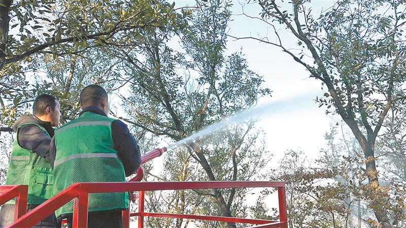 沿着惠山盘山公路蜿蜒向上,记者在三茅峰顶见到了新投用的森林防火水炮。梁溪区山北街道森林消防半专业队队长吴勇波在手机上轻轻一点发出指令,不到3秒,一道比小臂还粗的水柱便从炮口骤然喷出。这座防火水炮最大扬程200米,可360°旋转。市自然资源规划局梁溪分局林管科负责人介绍,之所以在此增设水炮,是因为三茅峰山顶区域林密、游客多,且曾有火情记录,是典型的防火重点难点区域。以往,在崎岖的山路上演习和灭火时,防火队员需携带水带,水枪开启时产生的后坐力在陡坡上容易导致人员失去平衡、摔倒,有一定的风险。如今,水炮既能实现远程精准灭火,又能提升灭火效率与安全性。