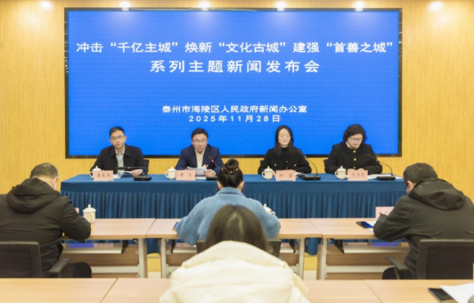 11月28日,江苏泰州海陵区举办“冲击‘千亿主城’焕新‘文化古城’建强‘首善之城’”系列主题新闻发布会第四场——高标准推进乡村振兴专场。海陵区农业农村局党组书记、局长曹亮,海陵区华港镇副镇长李志兵,海陵区红旗街道办事处副主任常书琴出席发布会,全面介绍海陵区农业农村发展及乡村振兴推进情况。
