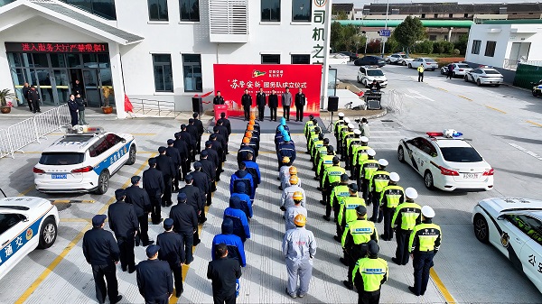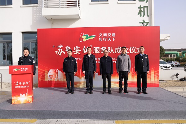 11月27日上午,常州市公安局交通管理支队、常州市交通运输综合行政执法支队在S122常想驿站联合举办“苏警安新”服务队成立仪式,市交通运输局副局长周旭栋、市公安局交管支队支队长吴秋安参加活动。