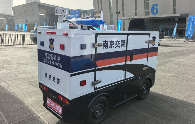 “南京交警温馨提醒,请电动自行车按道行驶,不闯灯不越线,感谢您的配合”“请佩戴头盔守法骑行,南京交警与您共护交通秩序”。今年6月以来,两辆头顶红蓝警灯、眼观“360度”的“四轮萌警”在建邺区江心洲环岛东路等路段稳当有序地往返巡逻,还不时对路面轻微违法行为进行语音提示。经过近半年的路面测试和技术更新,由南京公安交管部门联合城建集团南京智慧交通股份有限公司自主研发的“警小宁”无人驾驶AI巡逻车正式亮相世界智能制造大会。