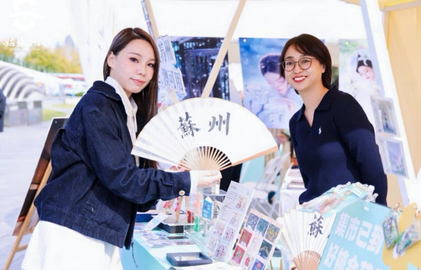 现场,“姑苏风物市集”人气爆棚,非遗市集设置苏州缂丝、山塘船宴、虎丘三花茶、桃花坞木版年画等项目,文旅企业展区集中展示姑苏景区、精品酒店、水上游、市民卡、旅拍等重点旅游产品。最具亮点的“姑苏繁华图鉴”沉浸式互动中,NPC“唐伯虎”派发角色透卡,游客通过扮演“范仲淹”“芸娘”等苏州名人角色完成任务,还可以现场换装旅拍,在趣味互动中深度感受古城的历史底蕴与市井繁华,颠覆传统旅游印象,注入全新的年轻态活力。