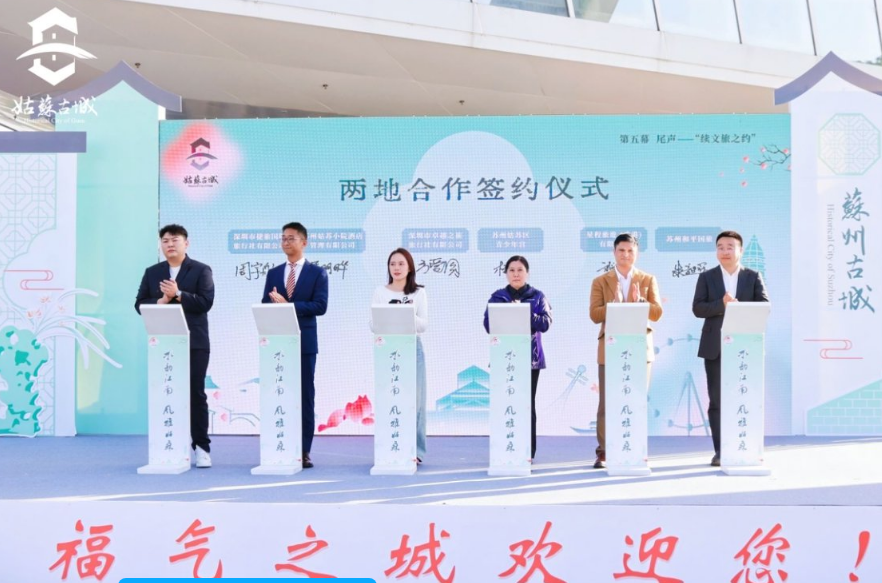 活动首发《苏州古城入境游宣传片》及《大湾区人在姑苏》推介宣传片,以粤港澳大湾区这一国际窗口,精准触达海外游客。除了“唱好戏”,此次推介活动同样注重“搭好台”,苏州与粤港澳大湾区两地文旅企业迎来了期待已久的互动洽谈环节。活动吸引了近80家粤港澳文旅机构现场洽谈,星程旅遊、深圳卓越之旅、深圳捷旅国旅等单位与姑苏区相关单位达成合作意向,为苏州与粤港澳大湾区在客源组织、产品开发与国际市场联动上建立深度合作。这标志着苏州古城系统性地深化入境游战略布局,通过打造沉浸式场景与多元化文旅产品体系,向“世界级旅游目的地”迈出坚实一步。