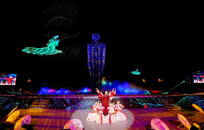据介绍,演出的惊艳呈现,得益于无人机编队的精准舞步、智能威亚的灵动轨迹与边缘计算系统的紧密协同。科技正成为拈花湾景区传递美、创造意境、触动心灵的桥梁,让置身其中的观众,能在璀璨夜色中找到属于自己的感动瞬间。