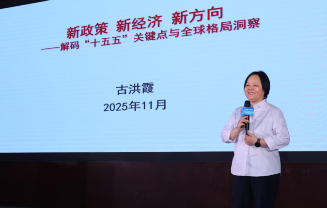 应用经济学专家、新苏南模式研究中心智库主任古洪霞作《解码“十五五”关键点与全球格局洞察》主题分享。