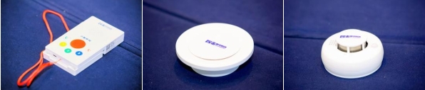 从左到右分别为:小智语音呼叫器、跌倒探测仪、四合一烟感