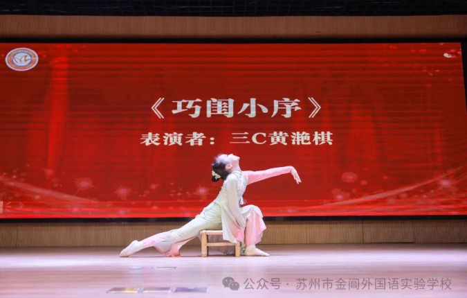 美育无声,艺术有痕。苏州市金阊外国语实验学校三C班黄滟棋同学带来舞蹈《巧闺小序》,灵动舞姿展现美育独特魅力,让在场嘉宾感受美育浸润心灵的力量。