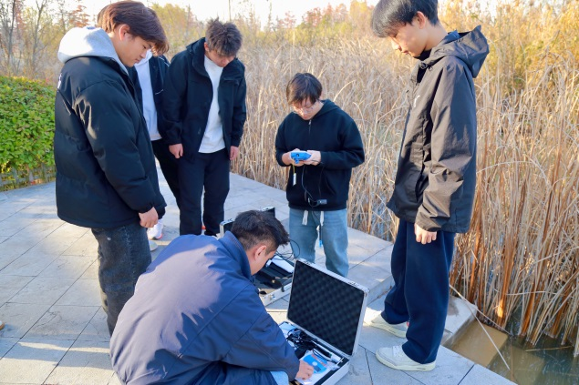 “脚下是采煤塌陷区蝶变的生态画卷,手中是赋能绿色发展的专业设备。这堂‘沉浸式’课堂,让大家深刻体会到环测专业‘测天绘地、护佑生态’的使命分量。”环测学院党委副书记孙婷现场为学生上了一堂微党课,她希望青春的环测人要坚定信念、锤炼本领、勇于担当,将个人理想融入生态文明建设。