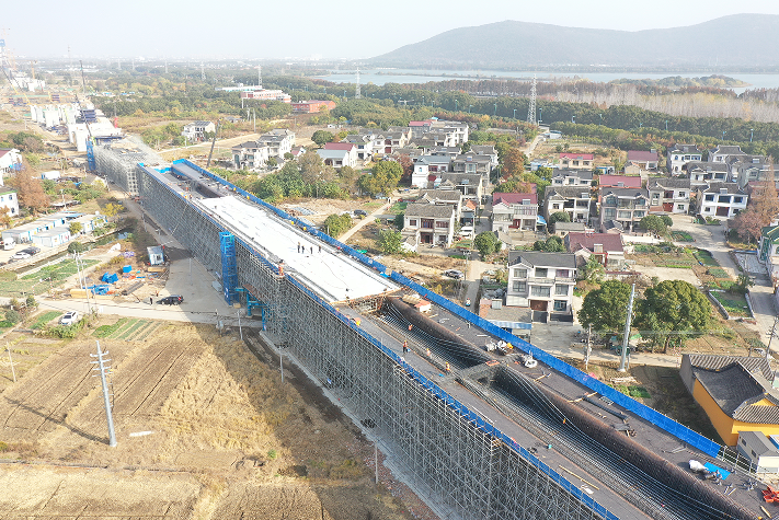 本次浇筑的连续梁是苏虞特大桥常熟西站6*32.7米道岔梁,长196米,采用桥位支架分段现浇法施工,分为1号、2号、3号三段浇筑,本次完成的为该道岔梁2号段,长77.5米,设计浇筑总方量约800立方米,历时约14小时,一次性浇筑完成。该连续梁具有跨度大、精度要求极高、施工工艺复杂等显著特点。