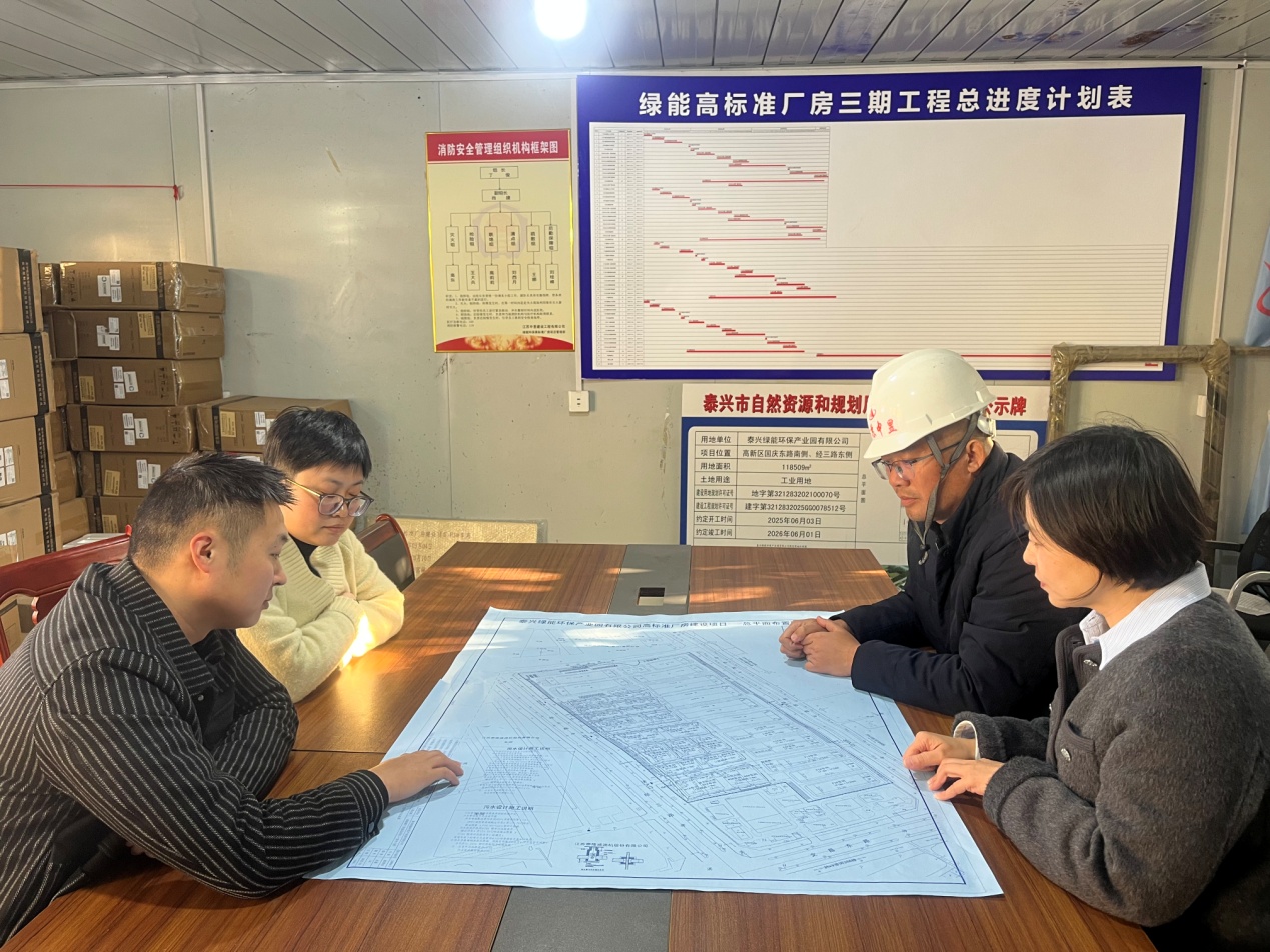 泰兴市绿能环保产业园有限公司是这项政策的直接受益方。该公司在取得用地后启动7幢高标准厂房建设,总建筑面积约2.8万平方米。今年2月提交建设工程设计方案审查申请后,当月即同步取得审查意见和建设工程规划许可证。项目于9月竣工后迅速通过验收,并同步领取不动产权证,全流程较原计划缩短近6个月。这一高效推进的背后,泰兴市自然资源和规划局构建的“1+2+3”服务保障体系发挥了关键作用。
