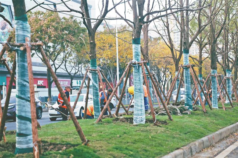 寒冬来了,城市绿化进入“脆弱期”。如何帮助它们安全越冬?修枯枝、穿“棉衣”、勤“加餐”……这几天,市政绿化工人已忙碌在街头巷尾。从市市政和园林局下属园林绿化管理中心获悉,市管绿化防寒抗冻专项行动本周全面启动,通过一系列科学精准的养护举措,绿植纷纷披上“防寒铠甲”,筑起冬日“温暖防线”。