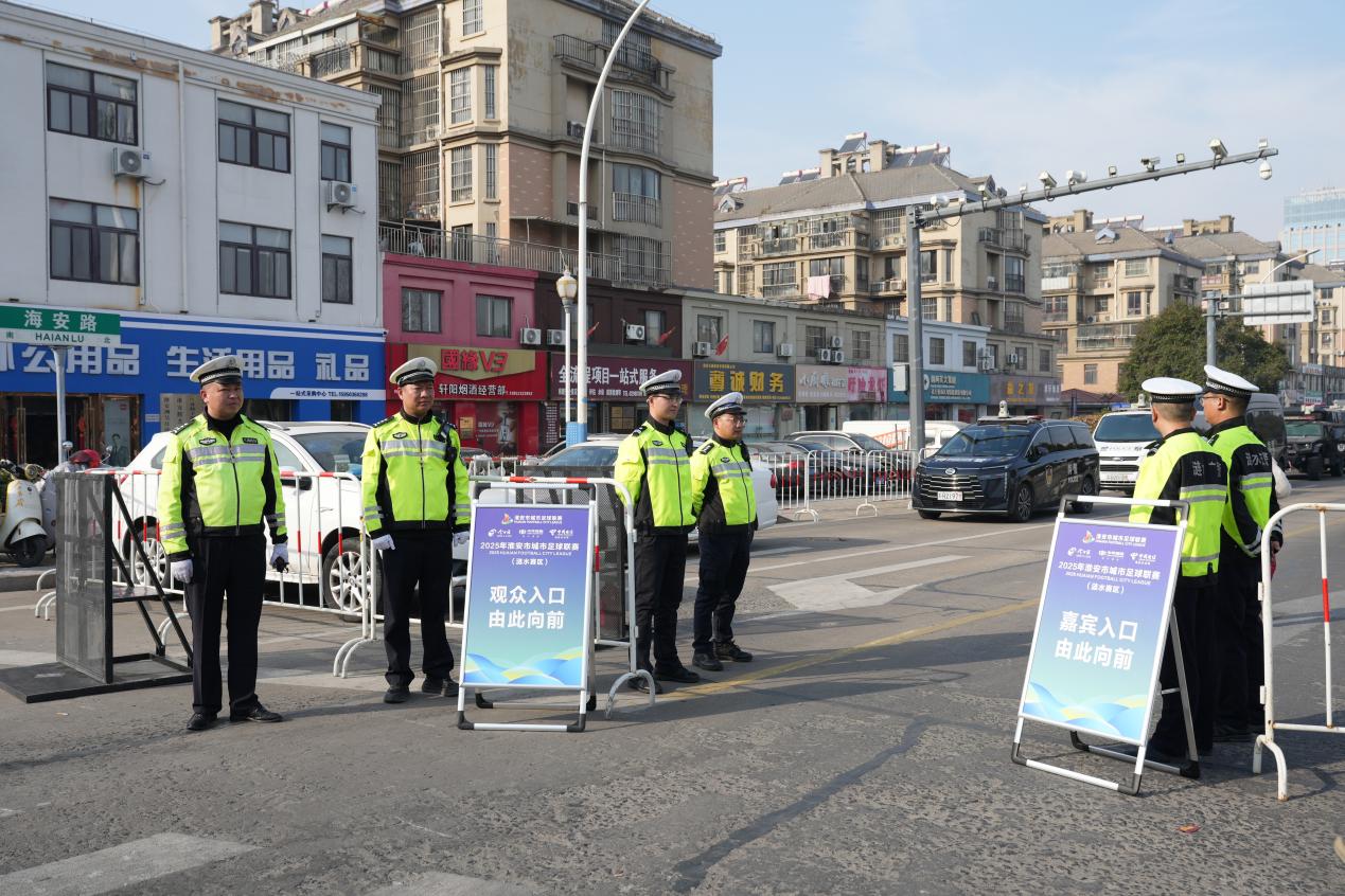 “淮超”赛事筹备伊始,涟水县公安局便将安保工作作为核心任务,迅速抽调巡特警、交警等警种部门和部分派出所警力,并成立安保工作指挥部,全面统筹推进安保措施落地。