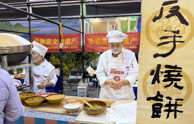 近日,在江苏省商务厅主办的“苏新消费·暖冬购物季”活动上,丰县商务局、丰县文体旅局联合选送的“丰县反手烧饼夹羊盘肠”亮相。这一特色美食以其独特工艺与地道风味成为全场焦点,展现了徐州传统美食的深厚魅力。
