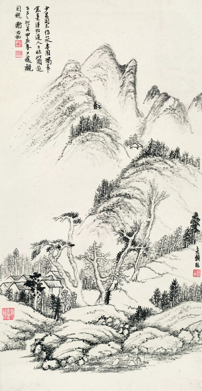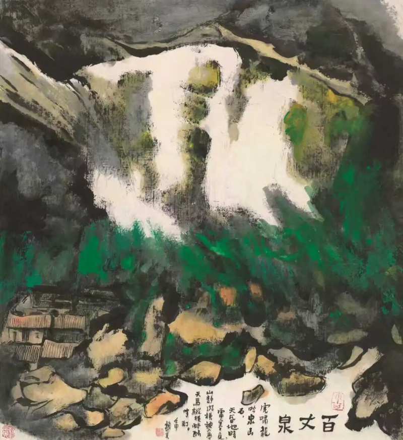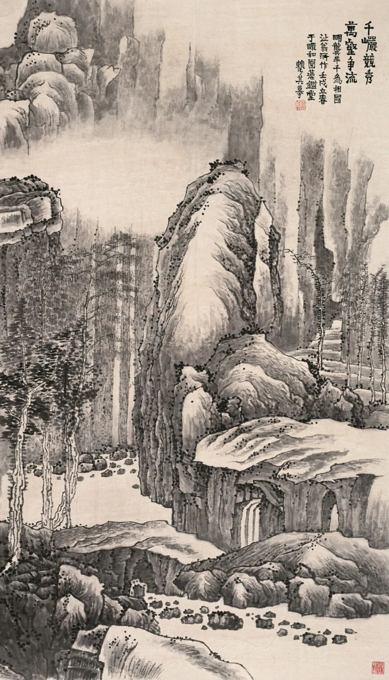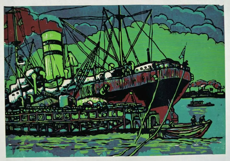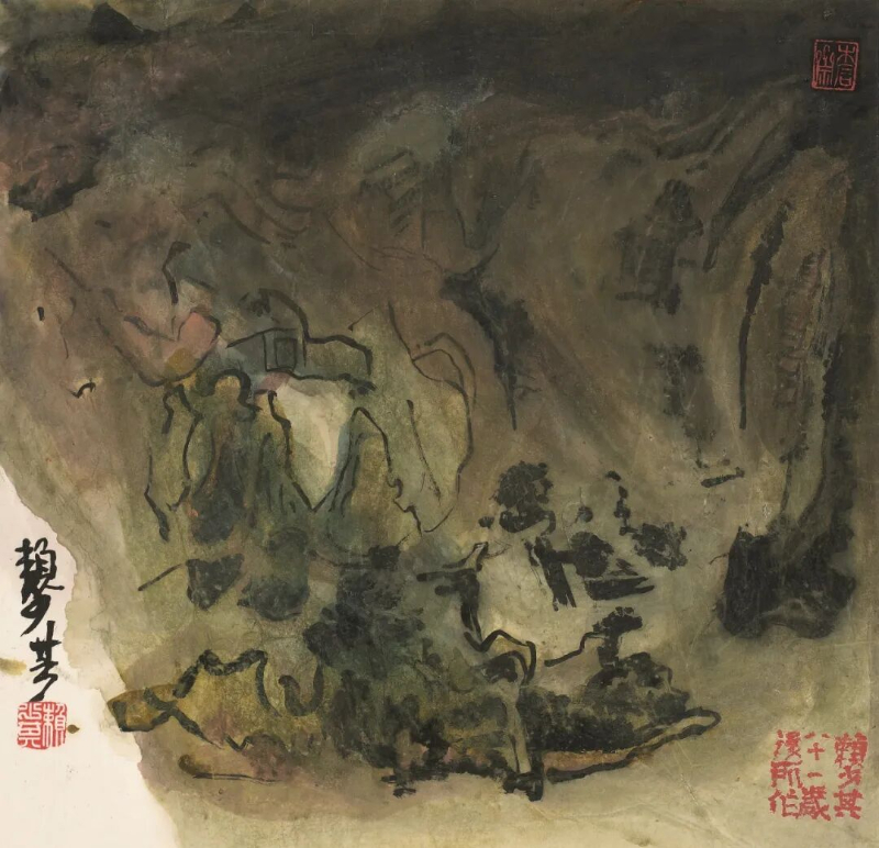 除了追溯他的艺术源头,展览还全面展示了赖少其多方面的艺术成就。一方面,他扎根传统,认真临摹古画、钻研书法,作品里满是对传统技法的传承;另一方面,他积极投身新兴木刻运动,作品始终紧扣时代脉搏:抗战时期,木刻作品笔力刚健,充满爱国情怀;社会主义建设时期,他以写实手法记录社会变迁;此后形成的“新徽派”风格,更是融汇中西,其作品中仿佛回荡着历史的余音。尤其值得一提的是他晚年的“丙寅变法”,以黄山为创作主题,把木刻的力度和西洋画的光影色彩融入水墨画中。他晚年的花鸟画也变得更抽象、更有意境,最终达到了简洁自然的艺术高峰。