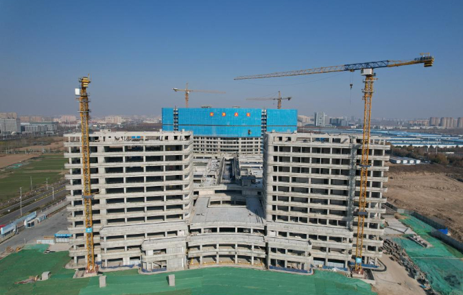 近日,随着最后一方混凝土浇筑到位,宿迁市重点民生工程——国家区域医疗中心(江苏省人民医院宿迁医院)项目实现主体结构全面封顶。