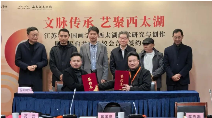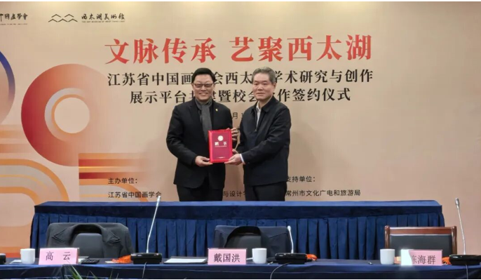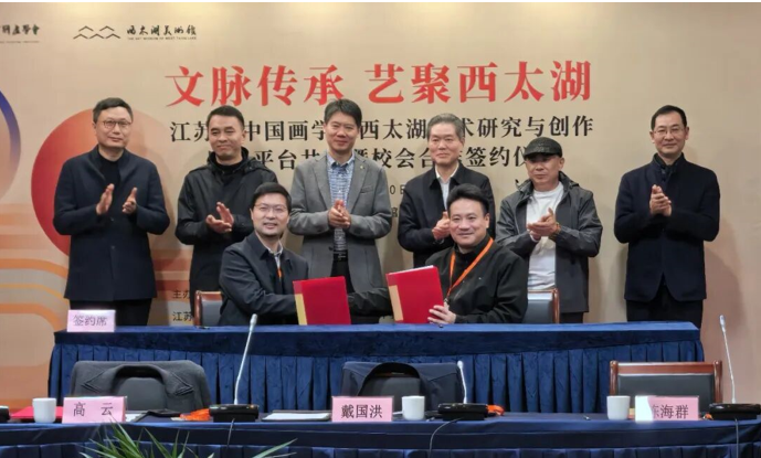 12月10日,“文脉传承 艺聚西太湖——江苏省中国画学会西太湖学术研究与创作展示平台共建暨校会合作签约仪式”在风光旖旎的西太湖畔圆满举行。这不仅是江苏省中国画界整合资源、践行“笔墨当随人”艺术理念的协同创新之举,更是常州深耕千年文脉、深化文体旅融合、推进文化强市建设的关键举措,为长三角文化艺术交流互鉴注入了强劲的时代活力。