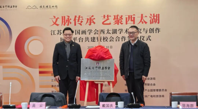 常州自古为历史文化名城,文脉悠长、艺风鼎盛。从清代“常州画派”领军者恽南田的“没骨”清逸,到近代艺术巨匠刘海粟的开拓革新,一代代名家大师以丹青为媒,铸就了常州画坛的辉煌过往,也为江苏中国画事业发展奠定了深厚根基。作为活动重要承载地,西太湖美术馆自2014年挂牌成为中国画学会常州西太湖创作基地以来,已逐步成长为汇聚名家、孵化精品、举办高水平展览的重要文化地标,成为区域文化交流的核心枢纽。此次与江苏省中国画学会携手共建学术研究与创作展示平台,并联袂常州大学、江苏理工学院签订校会合作协议,标志着学术资源、场馆资源与教育资源的深度融合迈出实质性步伐,将实现“资源共享、优势互补、协同发展”的良性互动,为江苏中国画艺术的当代传承与创新性发展注入持续动能。