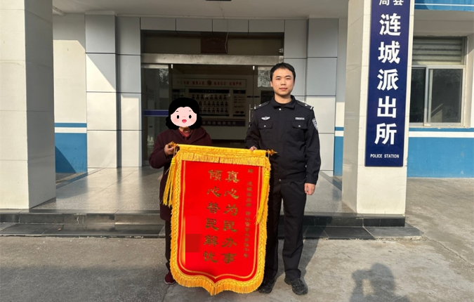 近日,辖区市民刘女士来到涟水县公安局涟城派出所,将一面印有“真心为民办事 倾心为民解忧”的锦旗,送到民警手中,感谢民警迅速为其找回失物。