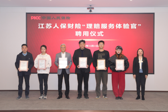 12月11日,江苏人保财险“理赔服务体验官”活动启动仪式在南京举行。来自南京市鼓楼区应急管理局、江苏省律师协会、江苏省保险行业协会的专家领导,华电江苏等重点企业客户及媒体代表共6人正式受聘,将以“亲历者”身份深度参与理赔全流程,为保险服务“挑刺”“支招”。
