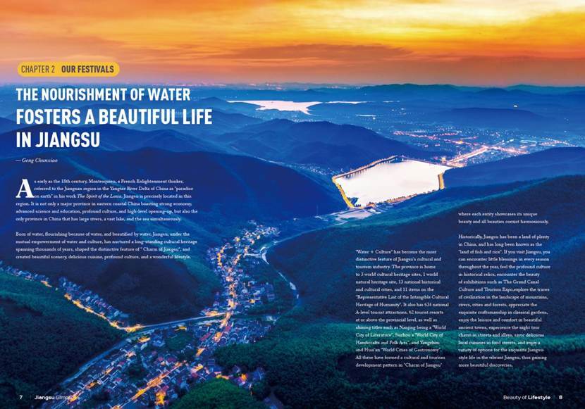 2025年秋,“水韵江苏”全球传播中心出品的Jiangsu Glimpses文旅指南《美的生活》出刊,以江苏苏式生活和节气时令为主线,设计线路带领读者在春夏秋冬邂逅四时确幸,在历史古迹感悟厚重文化,在山水城林中探寻文明印迹,在古典园林领略匠心独运,在水乡古镇享受闲适安逸,在大街小巷体验夜游风情,在美食街区遍尝烟火佳肴,在缤纷多彩的江苏尽享风雅苏式生活的多种选择。