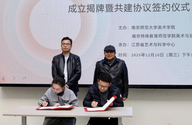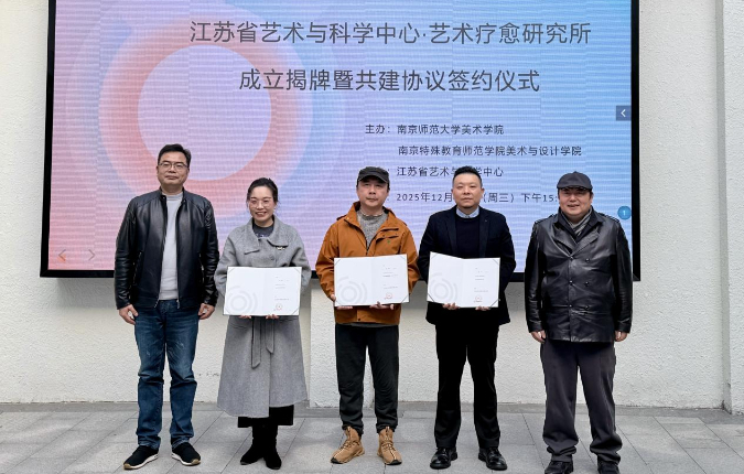 近日,江苏省艺术与科学中心·艺术疗愈研究所成立揭牌暨共建协议签约仪式在南京师范大学仙林校区笃学楼顺利举行。本次活动由南京师范大学美术学院与南京特殊教育师范学院美术与设计学院共同主办。