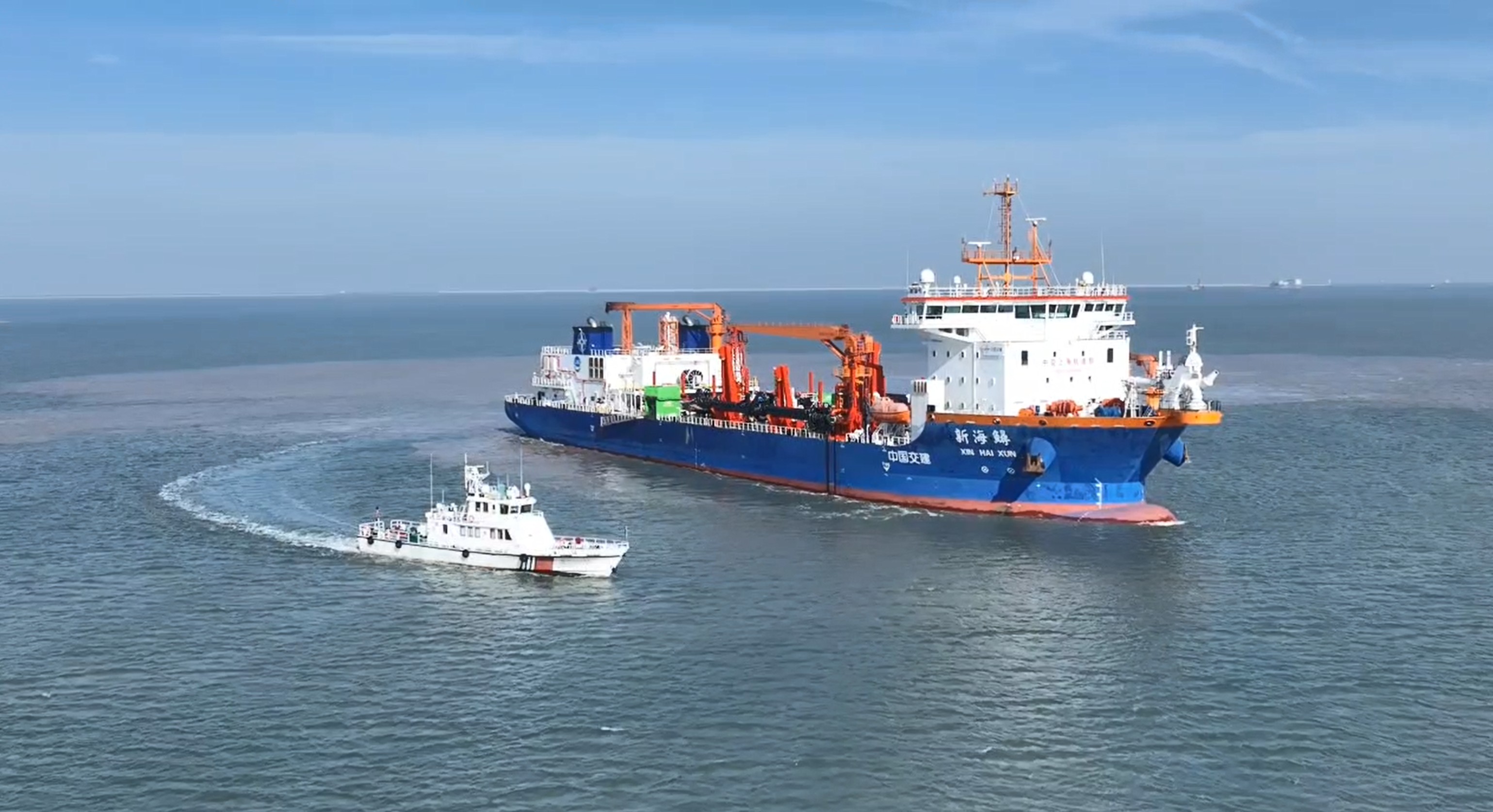 近日,LNG双燃料动力耙吸式挖泥船“新海鲟”轮在连云港海域接受专项安全检查。连云港海事局与船方联动开展海巡艇护航、双燃料技术互研、消防应急演习等活动,以精准监管筑牢安全营运屏障。