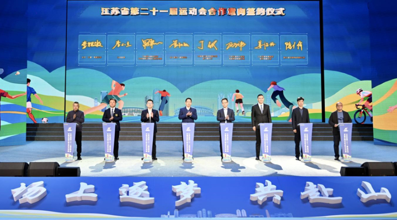 活动现场,举行江苏省第二十一届省运会战略合作签约,省运会“一网四端”“线上火炬手”小程序上线发布,裁判员、运动员、志愿者、市民代表宣读文明倡议书。现场还举行了江苏省第二十一届运动会开幕倒计时300天启动仪式。