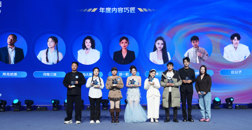 剧情、明星、音乐、游戏等领域的优秀创作者,现场分享了转型经验与成长故事,为新入局者清晰展示从内容创作到电商变现的成长路径。平台对年度内容巧匠创作者、年度商业拍档、年度创玩伙伴及年度聚力先锋机构进行表彰,江阴龙马传媒荣获“年度聚力先锋”奖项。
