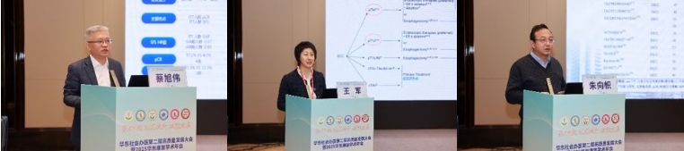 本次肺癌、食管癌专场研讨会深度聚焦“多学科整合”与“高质量发展”核心主题,议程设置充实多样,探讨视角全面多元,全方位覆盖领域热点与实践重点。在主旨报告环节,第一篇章,上海市胸科医院蔡旭伟教授以《局晚期NSCLC放免联合治疗进展与探索》系统梳理了局部晚期非小细胞肺癌放疗联合免疫治疗的最新临床进展,并对未来联合治疗模式的优化方向进行了探讨。河北医科大学第四医院王军教授以《食管癌保器官治疗策略》系统性地整合了放疗、化疗、免疫治疗等综合策略,内容前沿且结构清晰,更强调了以患者生活质量为核心的个体化决策理念,极具临床指导意义。江苏省肿瘤医院朱向帜教授以《局部晚期可切除食管鳞癌围手术期治疗的我院经验和思考》展示了苏肿在局部晚期可切除食管鳞癌围手术期治疗领域的宝贵经验,其基于临床实践形成的治疗方案和疗效数据极具现实参考价值,为同行提供了重要的诊疗思路借鉴,有力推动了该领域个体化治疗策略的发展。