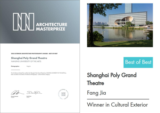 2025年美国建筑大师奖(Architecture Master Prize)(简称 AMP)组委会公布了获奖名单。南京艺术学院传媒学院摄影系贾方主持的“上海保利大剧院”建筑摄影项目,荣获2025年AMP美国建筑大师奖“建筑摄影类-文化建筑外观”组别最高奖“最佳杰出奖”。