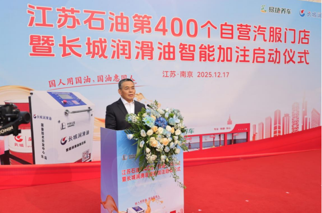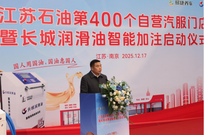 中国石化江苏石油董事长、党委书记胡珣在致辞中表示:从首店探索到400店集群布局,江苏石油实现易捷养车核心区域布局过半,跑出“二次创业”加速度。这是深化“油气氢电服”战略的生动实践,更是“为车主提供家门口优质服务”承诺的落地。此次同步启动的长城润滑油智能加注业务,旨在发挥集团公司产业链优势,推进长城润滑油的供应链、技术优势和江苏石油的网络、市场优势相融互促,共同培育车用润滑油智能加注市场,促进中国石化产业融合,为市场和消费者提供“更省钱、更省时、更环保、更透明”的优质服务,打造易捷养车特色服务项目。未来,江苏石油将以400店为新起点,联合产业链伙伴打造“人・车・生活”高价值生态圈,让专业、便捷的养车服务惠及更多车主。