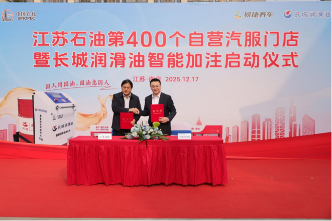 12月17日,中国石化江苏石油第400座自营汽服门店开业暨长城润滑油智能加注启动仪式在南京万寿加能站成功举行。现场与中国石化润滑油有限公司(长城润滑油)签订战略合作协议,标志着江苏石油“油气氢电服”综合能源服务商转型迈入规模化、生态化新阶段。