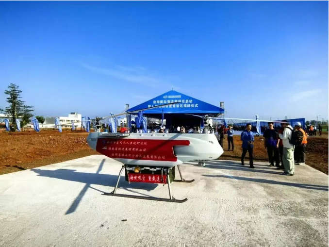 这架无人机机型由海南物流集团联合南京市空天无人系统研究院等多家单位共同研发。