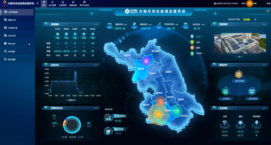 由龙城新能源自主开发的综合能源运营系统,是整个微电网的“智慧大脑”。这套“能源路由器”能实时调度光伏、储能、充电桩等设备,动态调节发储用节奏,实现能源流最优配置。