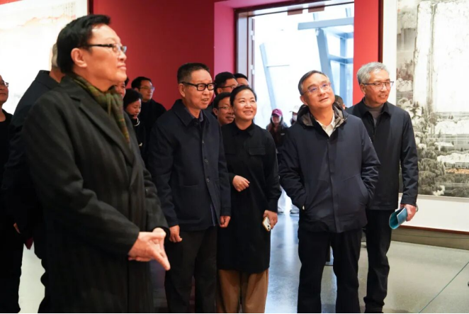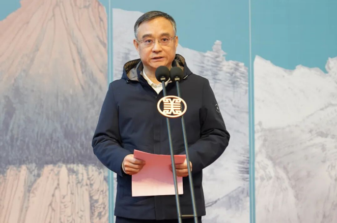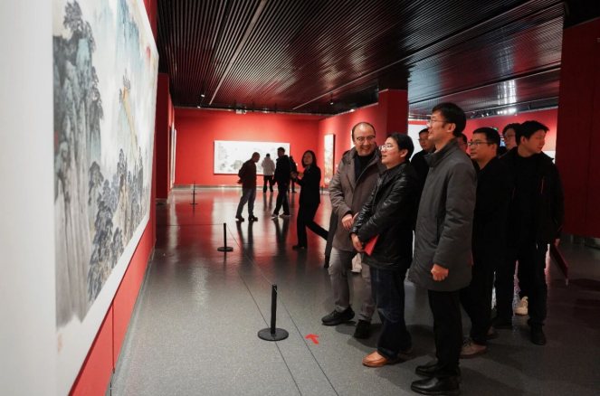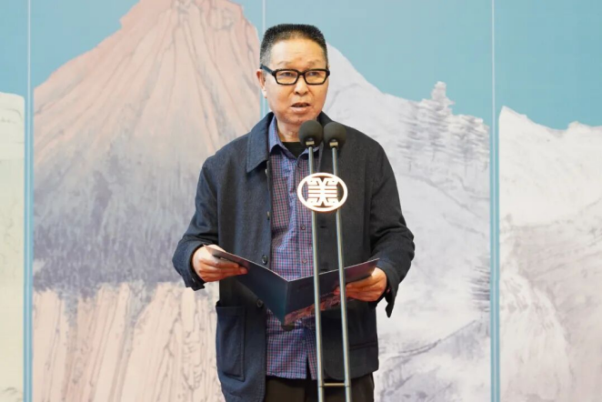 韩军在致辞中代表江苏省文联、江苏省美协向展览的成功举办表示诚挚的祝贺。他说,薛亮先生秉持锐意求变的创作精神,凭借深厚的人文涵养,创作出诸多气象宏大的佳作,对当代山水画的发展贡献卓著。在艺术传承上,薛亮先生积极投身“名师带徒”等活动,兼任多所高校特聘教授,言传身教,提携后学。弟子们结合生活感悟,探索个性路径,展现出昂扬的创作态势,构建教学相长的良性生态,形成和而不同的创作格局。本次展出的百幅精品,展现了薛亮师生在山水画图式和意境上的突破,是一场值得记录的艺术盛宴。他祝愿薛亮先生艺术之树常青,众弟子勇攀高峰,为当代山水画的创新注入青春活力。