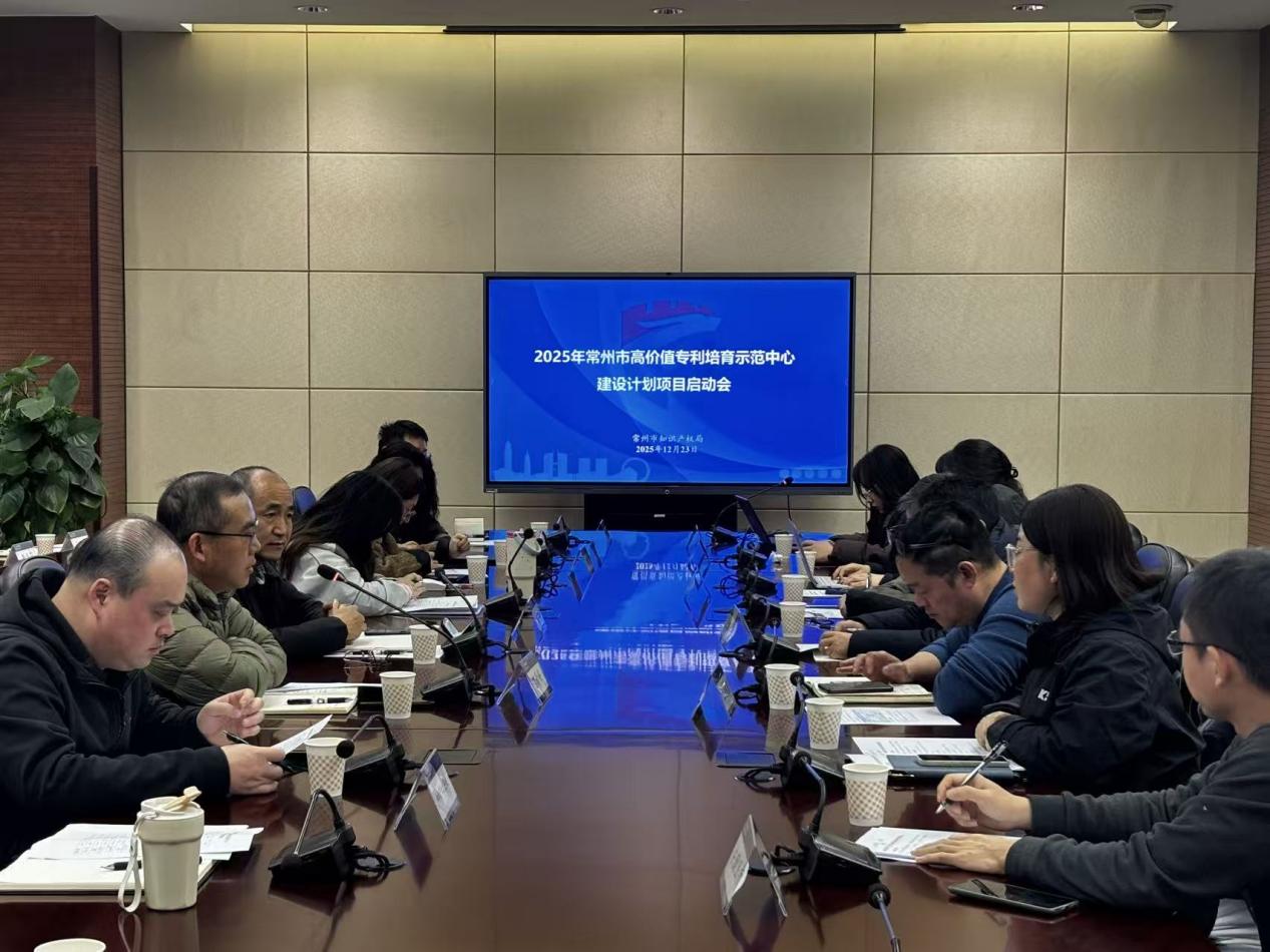 2025年12月23日下午,常州召开2025年市高价值专利培育示范中心建设计划项目启动会。