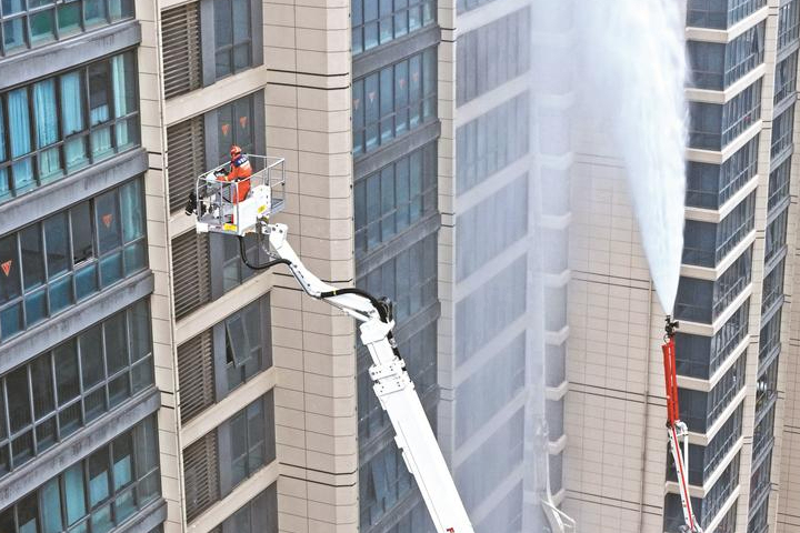 24日,为切实提升高层建筑火灾事故应急救援水平,宜兴市消防救援大队在翡翠四季花园小区组织开展高层建筑火灾应急演练。近年来,随着城市发展,高层建筑数量显著增加,消防安全重要性日益凸显。本次演练重点检验了应急响应、协同作战和人员疏散等关键环节,有效强化了应对高层火灾的实战能力。 (丁焕新 摄)