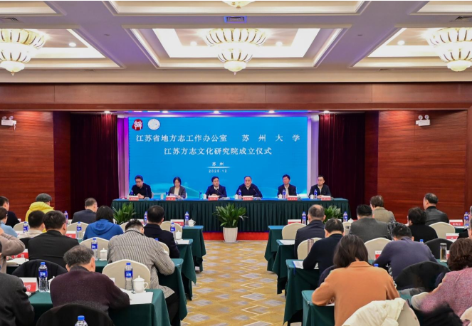2025年12月23日,江苏省地方志工作办公室与苏州大学合作共建的全国首家方志文化研究院在苏州成立。江苏省地方志工作办公室党组书记、主任,省地方志学会会长杨中华,苏州大学党委常委、纪委书记、派驻监察专员宫向阳,江苏省地方志工作办公室副主任、党组成员刘立军等领导出席,杨中华、宫向阳共同为研究院专家委员会专家颁发聘书。成立仪式由江苏省地方志工作办公室副主任、党组成员桑荟主持,来自全省地方志系统、高校及相关机构的专家学者80余人参加。