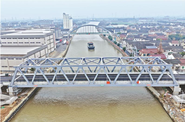 昨日,随着最后一块施工挡板顺利移除,申张线(张家港—江阴段)航道整治工程中最后一座改建桥梁——新建陆家桥正式建成通车。作为长三角高等级航道网“两纵六横”连申线的苏南重要通道,申张线承担着区域内河水运的重要功能。新陆家桥的建成通车,不仅完善了江苏省干线航道网络,释放了内河水运潜力,更有效衔接助力优化城乡路网,为周边群众出行、区域产业联动发展提供了更加坚实的交通保障。