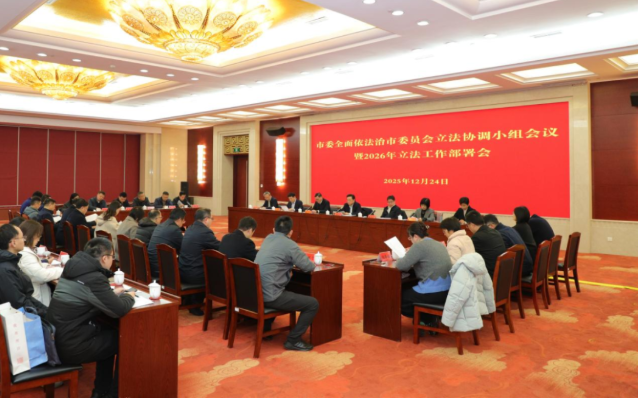 12月24日,市人大常委会联合市委全面依法治市委员会立法协调小组召开会议,总结我市“十四五”期间立法工作,部署2026年立法工作。市人大常委会副主任、市委全面依法治市委员会立法协调小组组长韩九云,副市长潘冬铃出席会议并讲话。