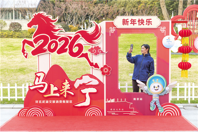 迎新年,环玄武湖也“新装亮相”。南京站地区大红灯笼连片悬挂,绿化带内点缀节日景观小品,电箱与树干上绘有马年图案与来自红山森林动物园的“明星动物”,氛围感十足又洋溢暖意。在南京站南北广场、太阳宫、国展中心等地,以“马上来宁”为主题的打卡装置融入环玄武湖文旅消费集聚区IP“环环”,形成“串珠成链”的网红打卡矩阵。