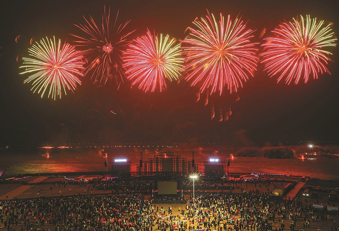 原标题:超35万发环保烟花、千架无人机点亮江苏园博园夜空