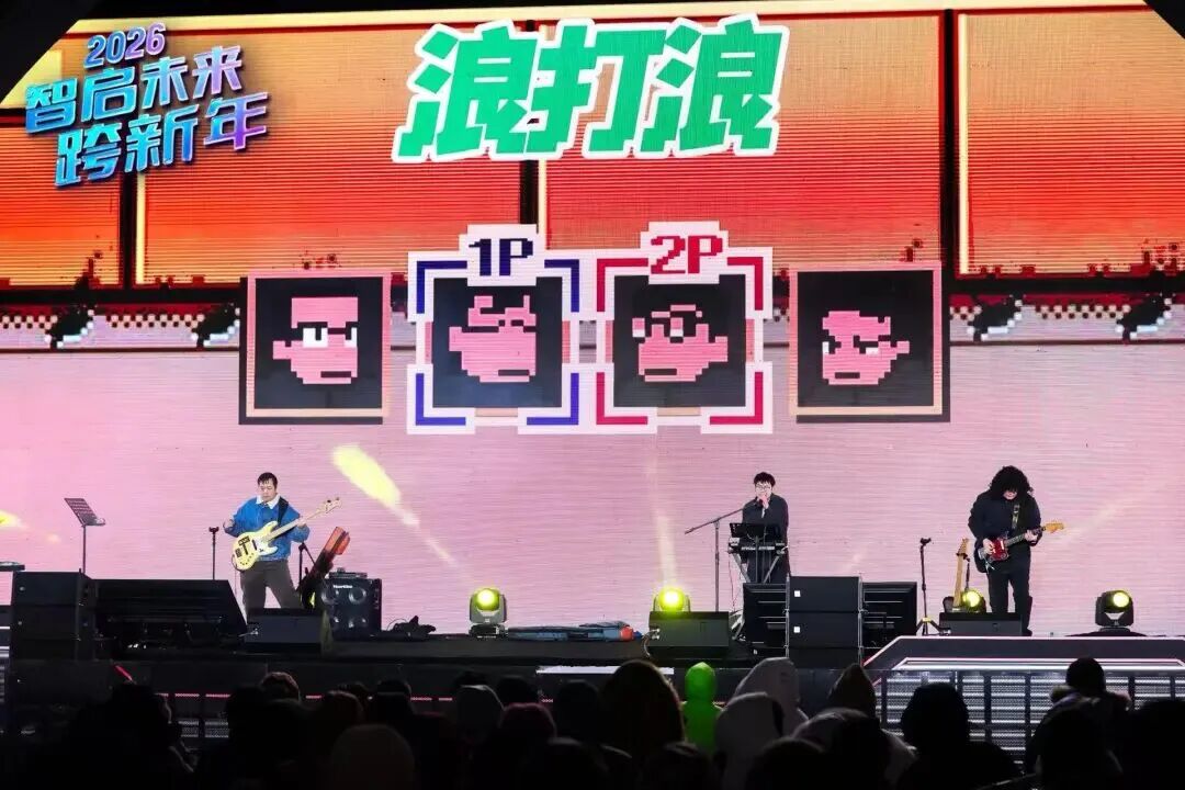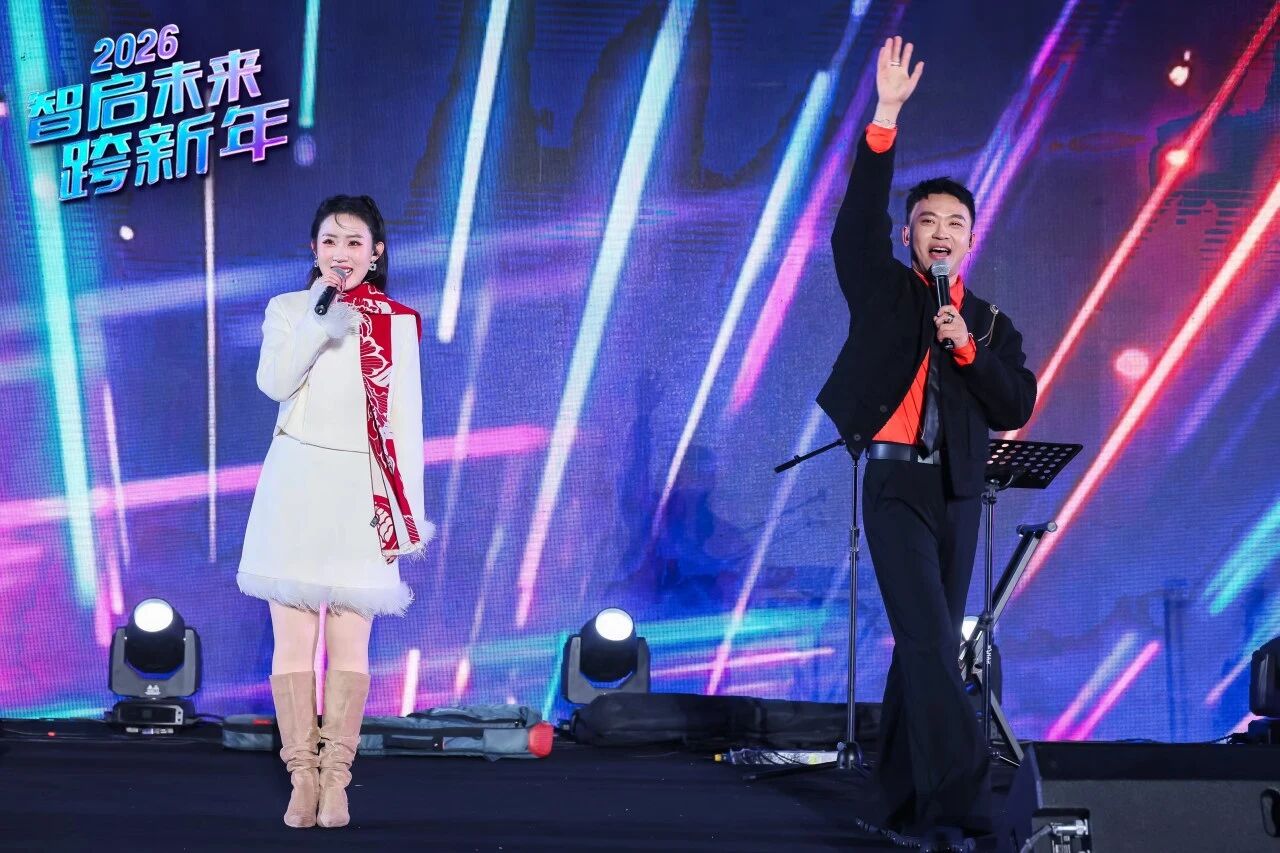 2025年12月31日晚7时,这场集高燃演出、烟火市集与科技光影于一体的惊喜跨年夜已经吸引观众在舞台区聚集。江苏音乐广播超人气主持邓煌、杭程等悉数登场,《棉花糖》《我的未来不是梦》等一首首金曲氛围感十足,带来满满回忆杀;一曲《新年快乐》更是瞬间点燃全场,引发千人合唱,观众挥舞手机闪光灯,汇成一片流动闪耀的星河。互动环节同样精彩纷呈,拍八虚体验,趣味有奖问答轮番上阵,更有超多惊喜福利派送不停,热烈的氛围驱散了冬夜的凛冽寒意。