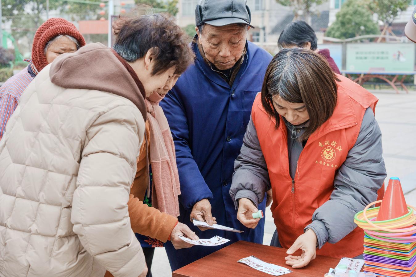 “拆盲盒”区域充满了惊喜与思考,成为传播移风易俗理念的趣味载体。志愿者们精心将涵盖婚丧嫁娶、孝老爱亲、节俭环保等多个领域的移风易俗问题放入盲盒中,尤其针对传统丧葬习俗中不良现象设置了专项问答,直击陈规陋习痛点。活动现场,大家踊跃参与,争相排队拆盒答题,有的抽到题目后低头认真思索,有的则与身边人轻声交流探讨。每当有人准确答出问题,现场便响起阵阵掌声,志愿者随即为其添加积分。这个环节以寓教于乐的方式,让移风易俗知识入脑入心,在轻松互动中引导村民树立文明新风,为滨江镇推进移风易俗工作注入了鲜活动力。(刘子玉 孔睿 曹冯惠)