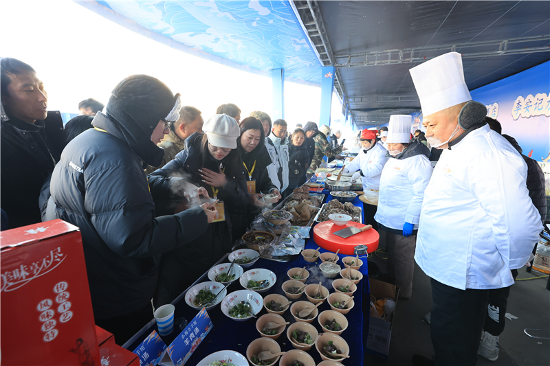 1月3日,冬飨山海鲜锋对决“江苏味道我是厨神”连云港美食主题赛在赣榆区海头镇朱蓬口渔火美食广场举行。现场进行了菜品展示、厨艺对决,品牌推介、展示了当地特色海鲜美食的特有魅力。(司伟)