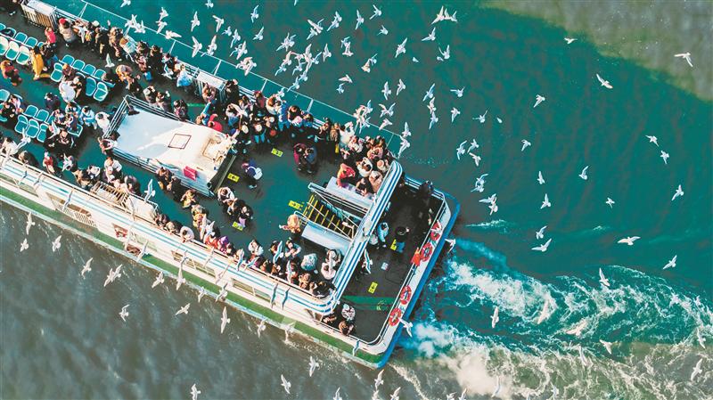据了解,近期鼋头渚景区每天的轮渡发班船次约20班,首班船于上午8点50分开航,其后每半小时一班。如果天气晴好、客流量增加,景区会适当加密班次,满足游客的观鸟需求。观鸟专线与旅拍套票服务近日同步上线,游客可在双休日抵达鼋头渚游船码头,乘坐“太湖之星”豪华游轮,在1个小时的航程中尽享“鸥遇橘子海”的独特景致,也可以身着华服,在专业人士的镜头下记录与红嘴鸥互动的美好瞬间。(黄梦羽)