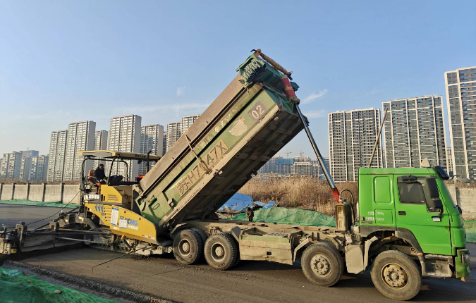 在盐河街道朝阳路排水管网畅通工程施工现场,卡车将后斗的水泥稳定碎石缓缓卸下,大型摊铺机在“轰隆隆”的响声中缓缓向前推进,压实石料,数台压路机紧随其后,来回穿梭将路面碾压得密实又平整。