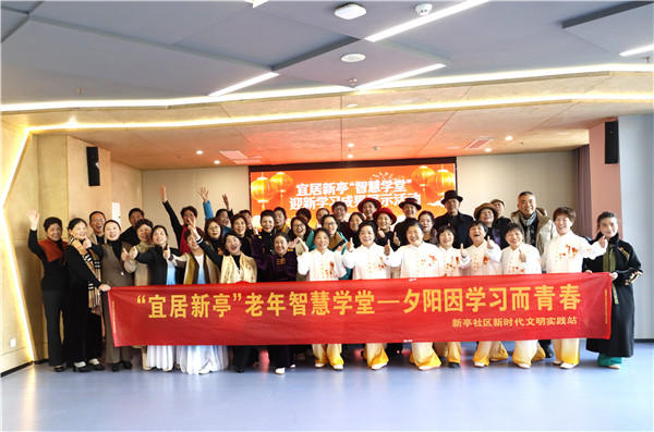 本次展演共征集到书画作品30余件,动态节目10余个,参与学员达60余人次。所征集的作品将在社区文化长廊持续展出,供居民参观品鉴。活动尾声,全体人员在镜头前留下一张张洋溢着幸福笑容的照片。“这场展演不仅是教学成果的集中检阅,更是终身学习理念的生动实践。”新亭社区将持续通过多元化课程设置与平台搭建,打造“老有所学”的幸福样板,让银发群体在家门口就能享受优质服务资源,为建设全龄友好型社会注入更多温暖力量。(玥涵 周雨乐)